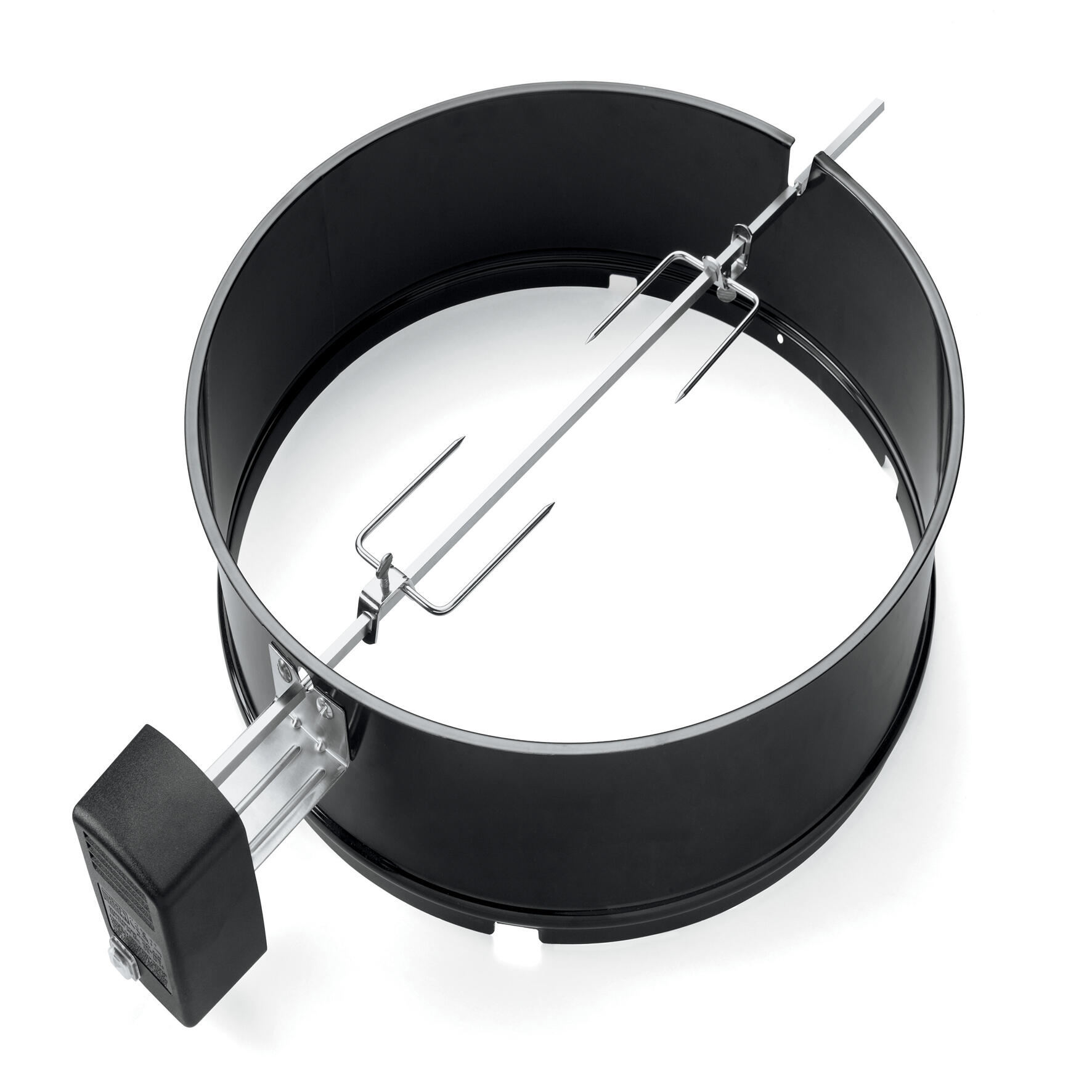 Il girarrosto per il modello a carbone include un anello in acciaio, lo spiedo e il motore. Il girarrosto fa ruotare la carne in modo che il pollame e i grandi arrosti ottengano un'uniforme esposizione al calore, regalando ogni volta meravigliosi risultati.