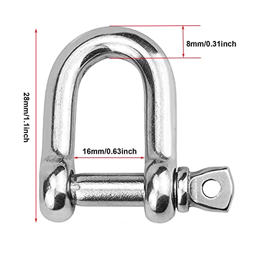 Grillo a D in Acciaio Inossidabile Grillo Acciaio Inox Grillo Con Anello a D Grillo Dritto, per Sartiame Pesante Trasporto Alpinismo Escursionismo, Accessori da Campeggio 4 Pezzi