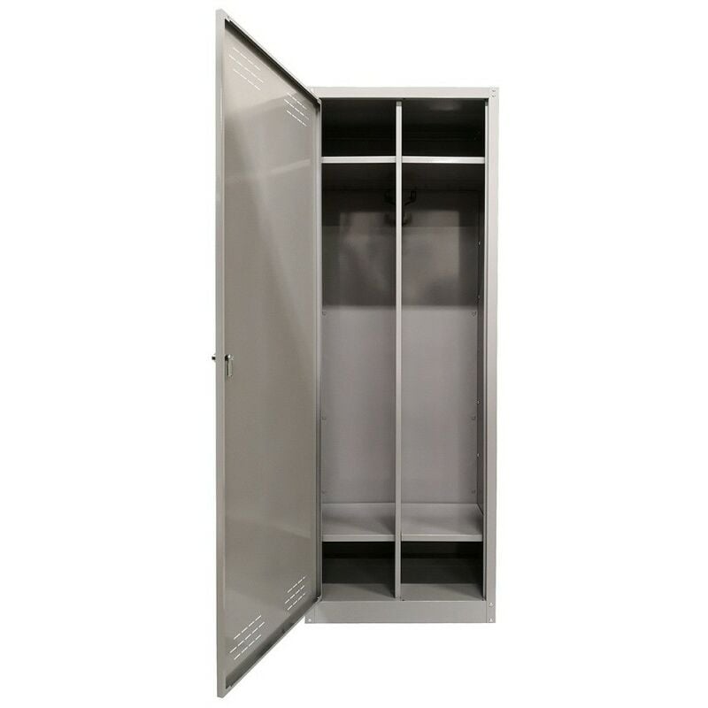 L'armadietto appendiabiti è resistente e robusto. realizzato completamente in metallo. E' la scelta ideale per spogliatoi. uffici. disimpegni oppure comodo da posizionare all'ingresso di casa per riporre in modo ordinato abiti. cappotti. borse o cappelli. Grazie al divisorio interno e al piano superiore e inferiore è molto comodo e pratico. Armadio - spogliatoio Realizzato in metallo Dotato di 1 anta con chiusura Dimensioni: 60 x 40 x h167 cm Capiente e resistente