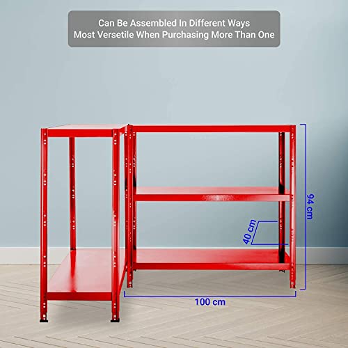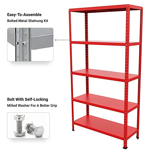 GRIMA Scaffale Metallo 5 ripiani - 100x40x187h cm (80 kg per ripiano, totale 400 kg) Scaffali in metallo per garage pesi, scaffalature per cucina, ufficio, scaffale professionale in metallo (Rosso)