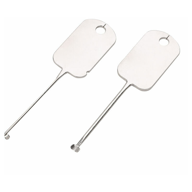 Strumento per grimaldelli in 2 pezzi. Caratteristiche: Materiale in acciaio inossidabile robusto e durevole. Super compatto e leggero, facile da riporre e trasportare. < br/> La confezione include 2 pezzi, dimensioni dell'articolo in 3,11 * 0,79 * 0,08 pollici. Uno strumento manuale utile e pratico per la tua vita quotidiana. Migliora le tue abilità, esercita la potenza del cervello e porta più divertimento.< br/> Caratteristiche: Materiale: acciaio inossidabile Colore: argento Dimensioni dell'articolo: 7,9 * 2,0 * 0,2 cm / 3,11 * 0,79 * 0,08 pollici Peso articolo: 19 g / 0,66 once Dimensioni confezione: 10,0 * 4,5 * 0,2 cm / 3,94 * 1,77 * 0,08 pollici Peso confezione: 20 g / 0,68 once Elenco dei pacchetti: 1 * set di selezione