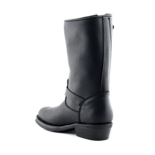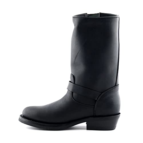 Grinders New Rebel Black Unisex Smooth Sole Leather West Boots Alti in Pelle (Ladies UK 7 / Mens UK 6 / EU 40)