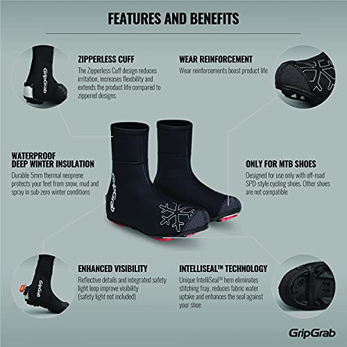 GripGrab Copriscarpe per Bici da Corsa MTB CX Termici Antivento Foderati in Pile Invernali Copri Scarpe Impermeabili, Ciclismo Unisex-Adulto, Nero, XXL