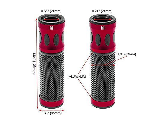Moto Mano Grips Per 22mm Barre - Rosso - Alluminio Anodizzato