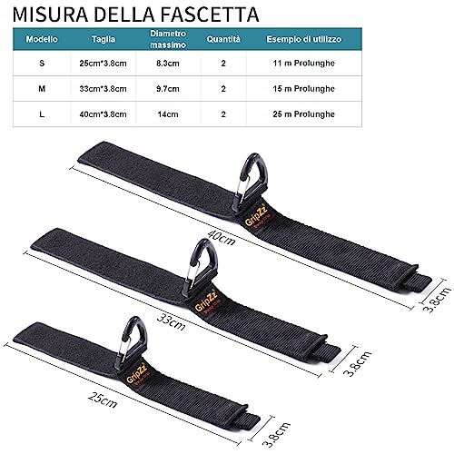 Set di 6 GripZz Organizzatori di Cavi Multifunzionali - Fascette Convenzionali per Garage con Fibbia Triangolare, Ideali per Fili e Tubi in Casa, Officina - Varie Dimensioni (2S, 2M, 2L)