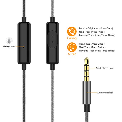 Gritin Auricolari, Cuffie Auricolare in-Ear con Microfono, Isolamento del Rumore, Alta Definizione, Bassi Potenti, Suono Puro - Grigio