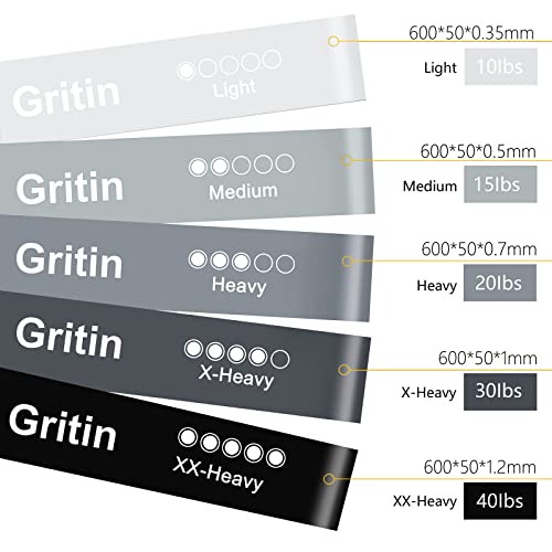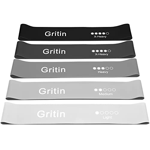 Gritin Elastici Fitness, [Set di 5] Banda Elastica Fasce Elastiche di Resistenza di Lattice con Istruzioni per l'esercizio in Italiano e Borsa per Il Trasporto per Crossfit, Yoga, Pilates