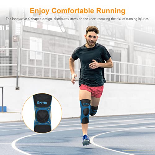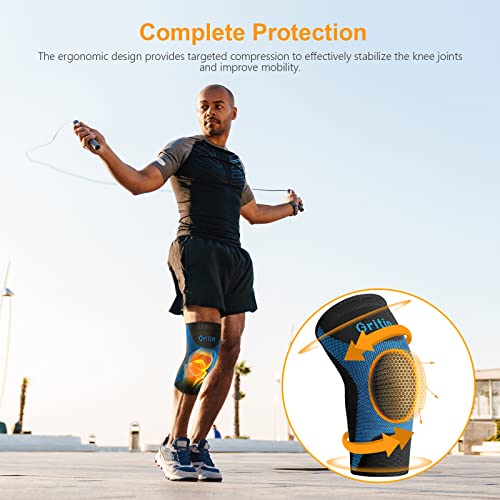 Gritin Tutore Ginocchio Ginocchiera Ortopedica 2 Pezzi, Ginocchiera Sportiva Elastica Design Antiscivolo per Uomo e Donna, Ginocchiera Rotulea Supporto per Corsa, Sport, Lesioni al Menisco, Artrite
