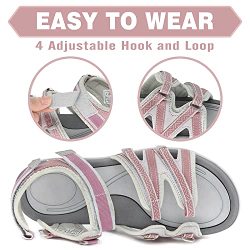 GRITION Sandali da trekking da donna, estivi, regolabili, con chiusura in velcro, comodi e aperti, per attività all'aria aperta, leggeri e sportivi, Colore: rosa., 38 EU