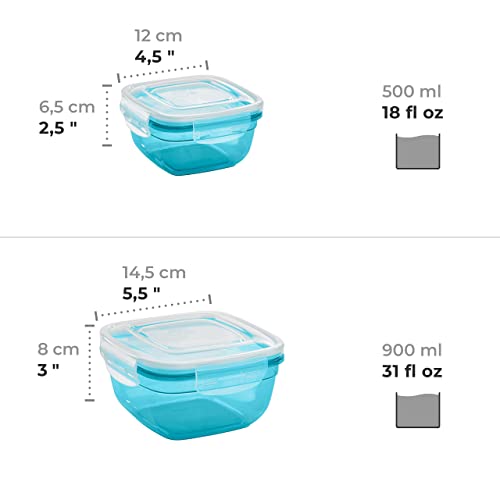 Grizzly Contenitore per Alimenti con Coperchio - Quadrato - Set da 4 - Ermetico - Anti Perdite - senza BPA