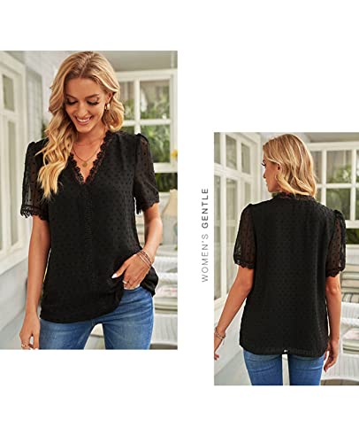 GRMLRPT Blusa Manica Corta Camicetta Donna Elegante Magliette Estive Casual Maglietta da Donna Pizzo con Scollo a V (Nero,M)