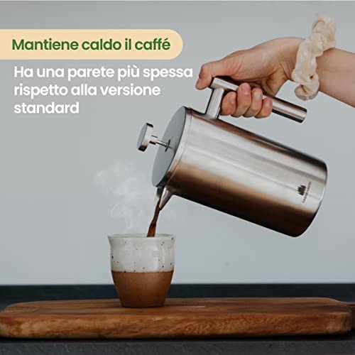 MANTIENE L'EFFETTO CALDO: La nostra caffettiera a stantuffo presenta una parete più spessa (0,8 mm) rispetto ai modelli standard (0,6 mm), il che significa che il tuo caffè rimane caldo per almeno 1 ora.