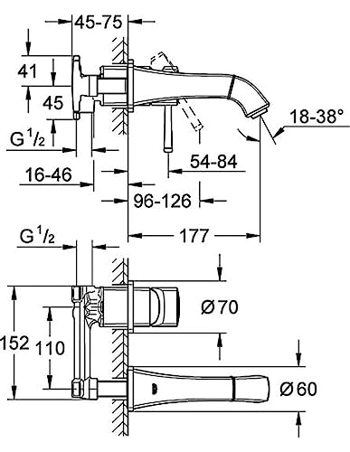 Grohe 19929IG0 Grandera Miscelatore Monocomando Lavabo-Installazione A Parete, Cromo/Oro, S