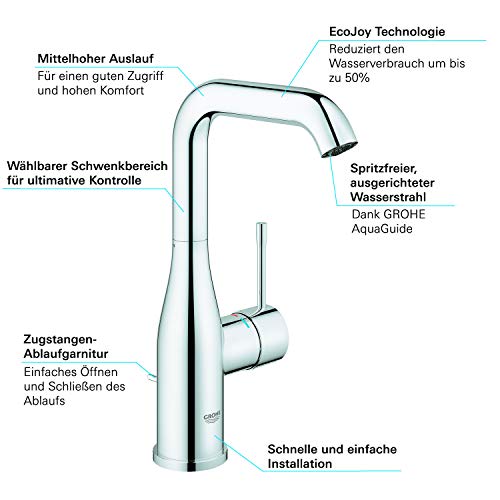 Grohe 32628001 Essence New Miscelatore Monocomando a Bocca Alta per Lavabo, Ecojoy, Cromo, L