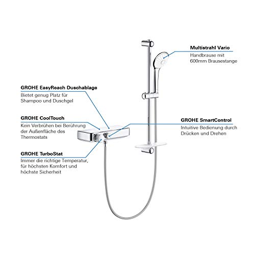 Comprende un'asta doccia da 600 mm, una manopola doccia da 110 mm e un flessibile anti torsione da 175 cm