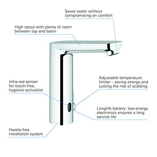 Grohe 36422000 Miscelatore Elettronico per Lavabo Taglia L con Comando ad Infrarossi, Argento, Large