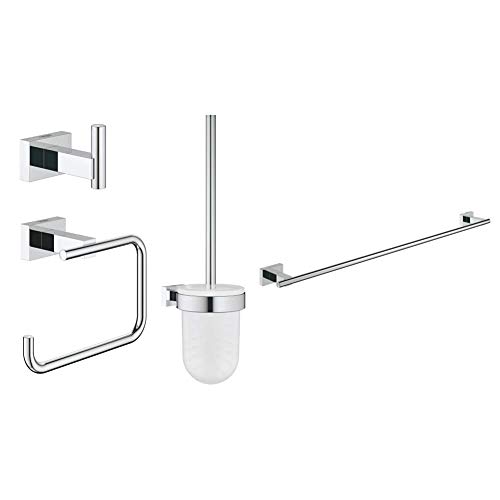 Grohe Set Accessori Bagno 3-In-1 Essentials Cube New, Cromo, Rettangolare & 40509001 Porta Salviette, Grigio (Cromo)