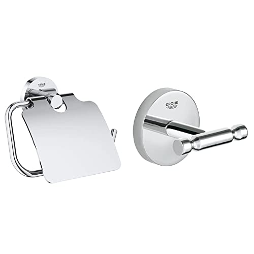 GROHE Porta Rotolo Essentials Cromo 40367001, Cromo + Grohe Gancio Baucosmopolitan Neutral, Cromo, 40461001