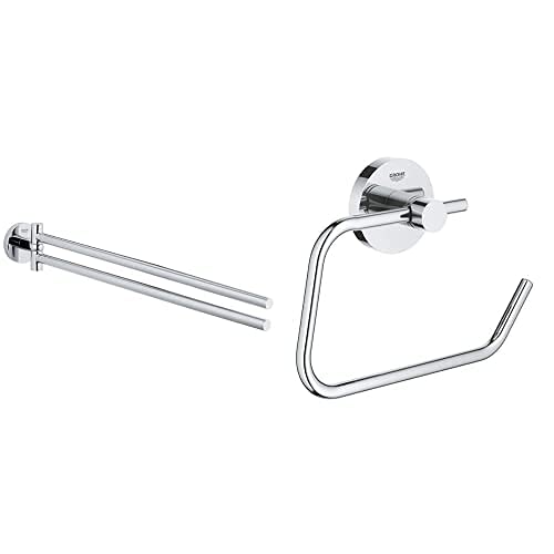 GROHE Porta Salviette Essentials Cromo 40371001 + Grohe Porta Rotolo Essentials New, Cromo 40689001