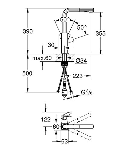 Bocca "L", cartuccia a dischi ceramici da 28 mm con tecnologia Grohe SilkMove