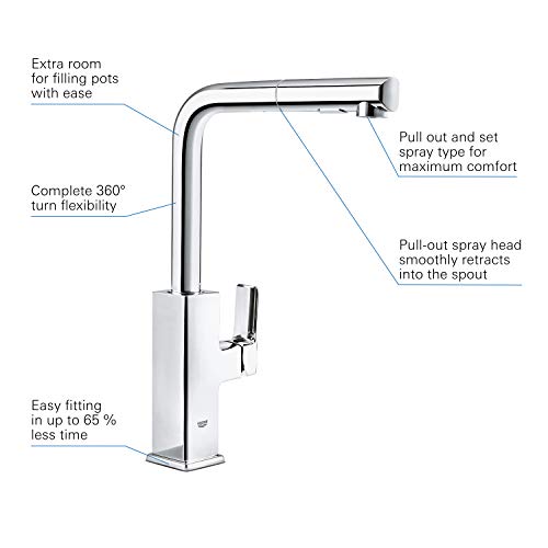 Grohe Tallin Miscelatore Monocomando per Lavello, Cromo, con doccetta estraibile a 2 getti, bocca girevole, Installazione veloce, 30420000