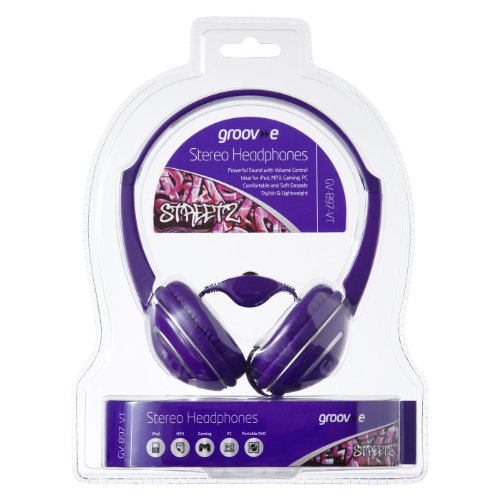 Groov-e Streetz VIOLA DJ Cuffie stereo con controllo di volume in linea per i bambini, bambini, ragazzi, ragazze, Smart-Phone, iPhone, MP3, iPod, musica, tablet, computer, gioco