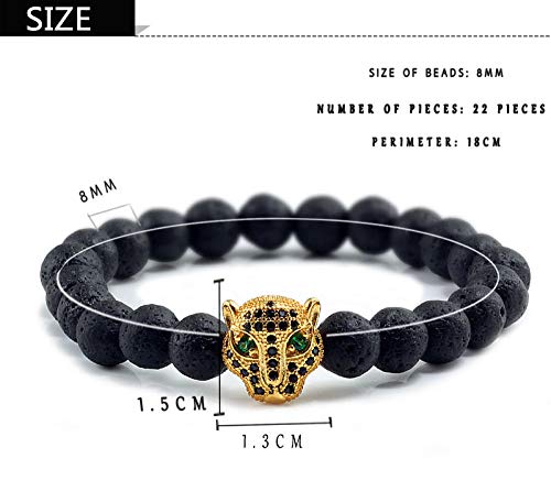 GROPC Bracciali da in Pietre Naturali,Braccialetti di Perline di Lava Nera 8Mm Braccialetti con Testa di Leopardo Dorato in Pietra Naturale Braccialetti Elastici di Yoga con personalità di Preghiera