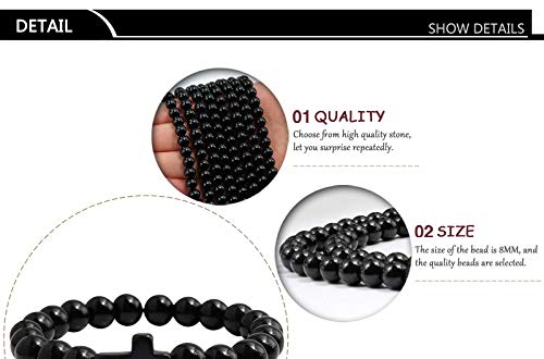 GROPC Bracciali da in Pietre Naturali,8mm Croce Blu Opaco Braccialetti con Perline Neri Bracciale Rigido Braccialetti con Ciondoli Etnici, Ragazze, Vacanze con Amici, Inaugurazione della Casa L