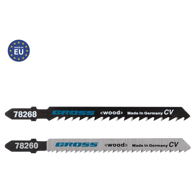GROSS - Lame per seghe alternative per legno - 2 pezzi (T101B e T144D) Set di 2 lame per seghe alternative per legno, resistenza e durezza aumentate. Acciaio di alta qualità. Accessorio professionale Le lame per seghe alternative GROSS sono progettate per il taglio del legno: qualsiasi tipo di legno, truciolato, fibra di legno e altri materiali a base di legno. La loro lunghezza e spessore sono ideali per il taglio di pezzi da 4 a 60 mm . Realizzate in acciaio al cromo vanadio tedesco di alta qualità, queste lame offrono una maggiore durezza e resistenza all'usura: ne deriva una maggiore durata nel tempo. Garantiscono un taglio preciso e regolare . Confezionate in un blister protettivo rigido.