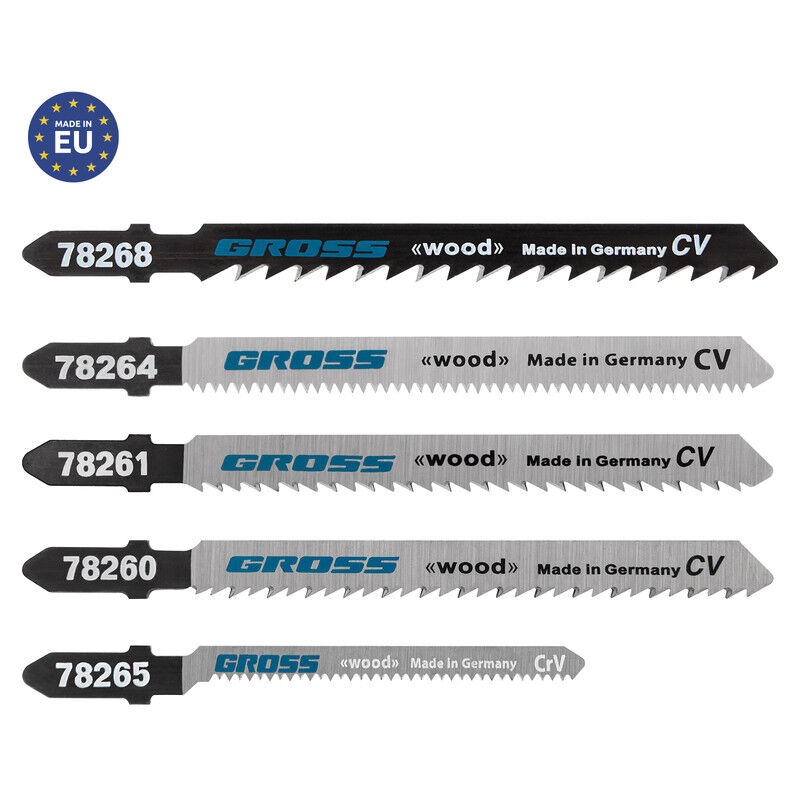 Le lame per seghe alternative GROSS sono progettate per tagliare legno di tutte le essenze, compensato e persino plastica. La loro lunghezza e spessore sono ideali per tagliare pezzi da 6 a 60 mm. Efficacia e durata Realizzate in acciaio al cromo vanadio tedesco di alta qualità, queste lame hanno una maggiore durezza e una ulteriore resistenza all'usura: ne deriva una maggiore durata nel tempo. Garantiscono un taglio preciso e regolare. Confezionate in un blister protettivo rigido.