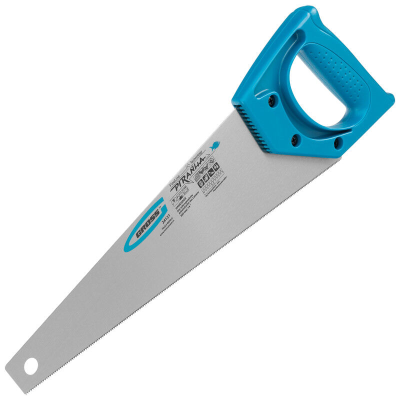 GROSS - Sega per legno "Piranha" - 360 mm - 15-16 TPI • Sega "Piranha" 15-16 TPI • Denti 2D temprati • Manico ergonomico bicomponente • Taglio efficiente • Robusto e resistente Per tutti i materiali a base di legno e plastica La sega per legno "Piranha" di GROSS è progettata per il taglio di legno, truciolato, pannelli in fibra di legno e anche materiali plastici come polistirolo espanso o poliuretano. Vi permetterà di effettuare una vasta gamma di tagli, longitudinali o trasversali, specialmente durante lavori di falegnameria, carpenteria o altri lavori di tutti i giorni. Costruzione robusta La sua lama in acciaio giapponese di alta qualità e i suoi denti affilati consentono un taglio netto e preciso . Inoltre, la sua progettazione garantisce una grande resistenza e riduce al minimo il rischio di rottura, con denti temprati tramite un processo di induzione . La lama è rivestita con un rivestimento in polimero che la protegge dalla corrosione. Qualità garantita La sega è prodotta a