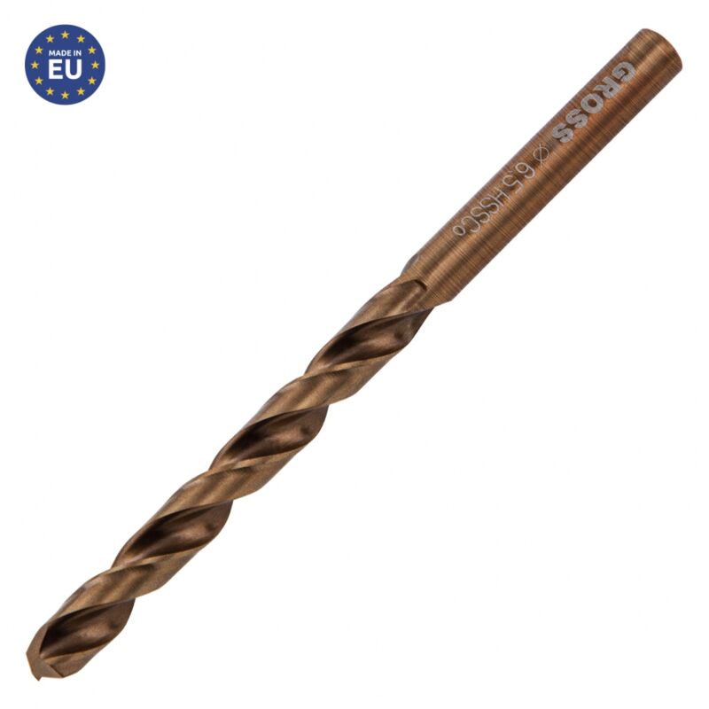 GROSS - Punta elicoidale per metallo HSS Cobalto - 6,5 x 101 mm Punta elicoidale per metallo in acciaio HSS e cobalto. Foratura efficiente, alta resistenza e maggiore durata. Forare non è mai stato così semplice! Le punte elicoidali GROSS sono progettate per garantire una foratura efficiente di metalli e altri materiali (acciaio legato e non legato, ghisa, leghe non ferrose e plastica dura). Consentono di realizzare forature di qualità in modo semplice ed efficiente. La loro progettazione assicura durata e resistenza senza pari. Efficienza e prestazioni Le punte HSS Cobalto sono progettate per effettuare forature con precisione. Il loro angolo di affilatura di 135° è ottimale per il lavoro con i metalli. Il profilo delle punte e la loro superficie lucida consentono un'ottima evacuazione dei trucioli di foratura e quindi prestazioni migliorate, in modo continuativo. Resistenza e durata La composizione in acciaio HSS e cobalto (5%) consente un utilizzo intensivo senza perdita di