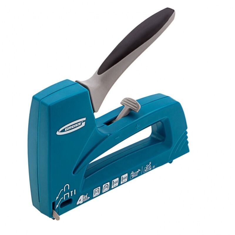 L'agrafeuse GROSS è progettata per fissare rapidamente tra loro diversi tipi di pezzi di legno come compensato, cartone, pannelli di truciolato, ecc. Vantaggi È realizzata in alluminio per fusione e ha un rivestimento protettivo, che garantisce una durata perfetta. È possibile regolare l'agrafatore per controllare la profondità dell'agrafo. Utilizzabile con graffette di tipo 53, 36, 300, 500 da 8 a 14 mm.