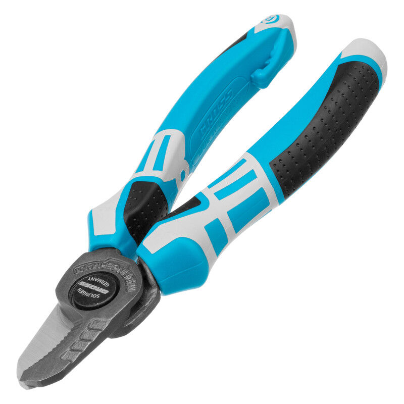 GROSS - Pinza tagliacavi - 160 mm - impugnature tri-componenti • Taglia cavi metallici: alluminio, rame... • Fino a 16 mm di diametro • Impugnature ergonomiche • Inossidabile, solido e resistente. Efficiente tagliacavi Le pinze tagliacavi laterali GROSS sono progettate per tagliare diversi tipi di cavi metallici: alluminio, rame, ecc. fino a 16 mm di diametro. Saranno particolarmente utili durante lavori di idraulica, ristrutturazione o montaggio in generale. Queste pinze sono prodotte in Germania seguendo un preciso processo tecnologico, con verifica di ogni fase e rispetto degli standard di qualità europei. La garanzia per difetti di fabbricazione è stata estesa a 5 anni . Design di alta qualità Le parti operative della pinza sono realizzate in acciaio forgiato, garantendo una resistenza all'usura aumentata, così come la loro durata nel tempo. Gli spigoli di taglio sono temprati tramite un processo di induzione, rendendoli più solidi e eliminando il rischio di rottura. Per