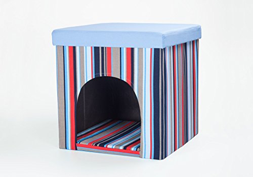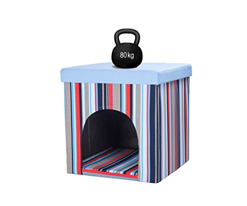 Grotta per Cani/Grotta per Gatti e Sgabello, Blu/a Strisce, 50 x 50 x 50 cm