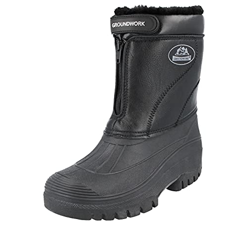 Groundwork LS88 Mens Mucker stabile Yard impermeabile inverno neve Zip stivali, Pelle PU nera., 36 EU
