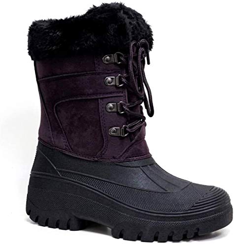 Groundwork - Stivali da neve da donna, in finta pelle scamosciata, foderati, impermeabili, caldi e impermeabili, per camminare, pioggia a metà polpaccio, taglia 4-8