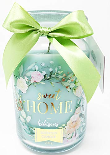 PAMA GROUP Candela Profumata Decorativa Giara in Vetro Grande Home Profumo Ibisco Dolce Lunga Durata Idea Regalo Cerimonia Bumoomboniera Aromaterapia Candle Spa (Ibisco)
