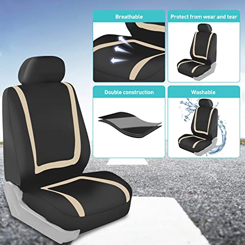 FH GROUP Coprisedili per auto, colore beige, misura universale, in tessuto piatto, si adattano alla maggior parte delle auto, SUV e camion (con 4 poggiatesta staccabili e panca solida) FB032BEIGE114