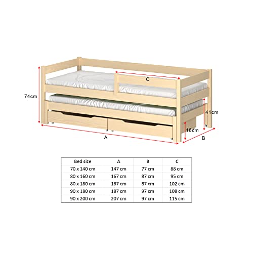 ✅ 【PRATICI CASSETTI】 - Sotto il letto estraibile troverai spaziosi cassetti estraibili in legno massello con un'altezza di 18 cm e una profondità di 60 cm