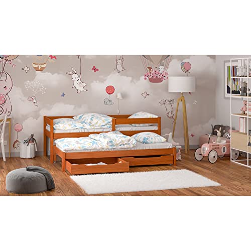 WNM Group Letto Singolo per Bambini JULA - Letto Estraibile con Cassetti Inclusi - Letto Bambini con Protezione Anticaduta -180x90/170x80 cm - Teak
