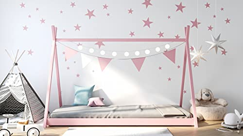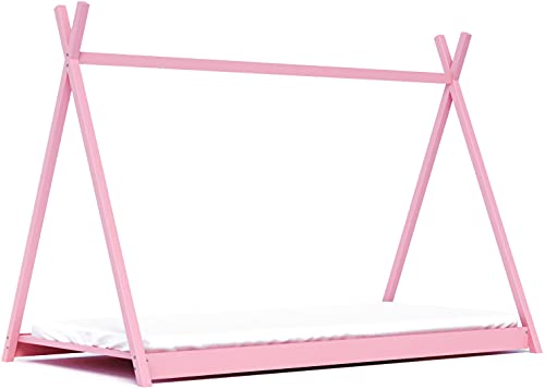 WFL GROUP Letto Tenda Tipi Letto singolo in solido legno 3 misure 90x190 80x180 80x160 - Letto a Capanna Montessori per Bambini - Per Bambini e Bambine - Legno di Pino Naturale - 190x90 - Rosa