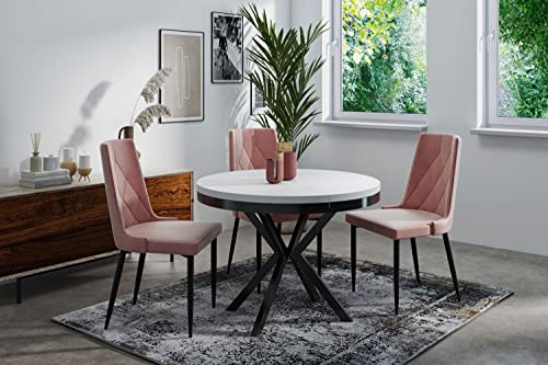WFL GROUP Tavolo da Pranzo Rotondo Allungabile - Tavolo Loft Style Con Gambe in Metallo - 100 a 180 cm - Tavolo Quadrato Stile Industriale Per il Soggiorno - Salvaspazio - Bianco - 100 cm