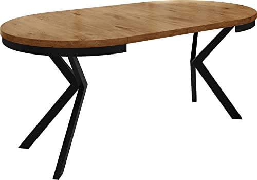 WFL GROUP Tavolo da Pranzo Rotondo Allungabile - Tavolo Loft Style Con Gambe in Metallo - 100 a 180 cm - Tavolo Quadrato Stile Industriale Per il Soggiorno - Salvaspazio - Rovere Lancelot - 100 cm