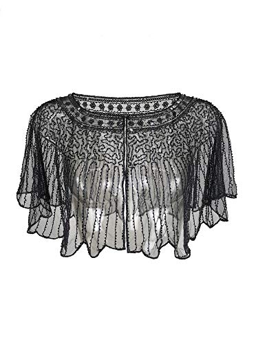 Grouptap Bolero Nero Grigio Donne Gatsby Mantello Scialle con Perline Paillettes Avvolgere Bolero per 1920s Art Decor Moda Abito da Sera Abito Abito Abito (Nero)