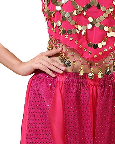 Grouptap Completo da 2 Pezzi in Costume da Danza del Ventre a Tema Indiano di Bollywood per Donne con Top e Pantaloni (150-170cm, 30-60kg) (Rosa)