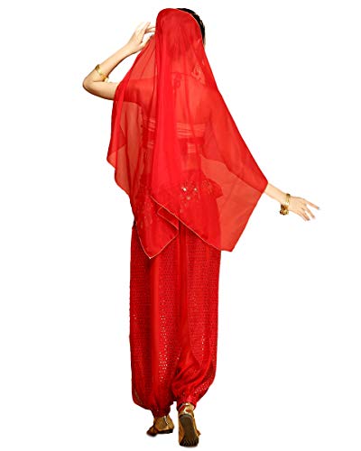 Grouptap Danzatrice del Ventre da Donna Set di Costumi in 4 Pezzi Vestito Rosso con Pantaloni Alti Sciarpa per Il Velo sulla Testa per la Danza araba egiziana (Rosso, 150-170 cm, 45-65 kg)