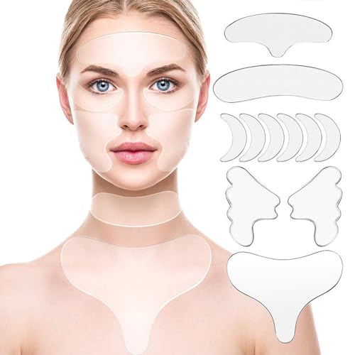 Grower 11 Pcs Patch Antirughe Cerotti,Cerotti Antirughe,Cerotti Per Il Viso Silicone Pad,Cerotti Per Le Rughe Del Viso,Compreso Di Petto In Riutilizzabile Patch Per Gli Occhi Guancia E Fronte Pad