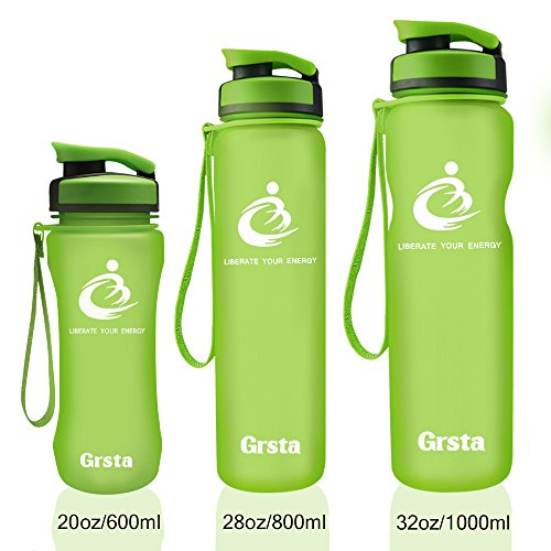 Grsta Bottiglia d'Acqua Sportiva - 28oz-800ml Borraccia Sportiva, a Prova di perdite, Riutilizzabile Senza BPA tritan plastica Detox Bottiglie Acqua per Palestra, Sport, Yoga, la Corsa, (Verde)
