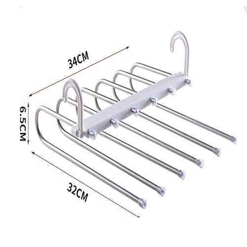 Grucce per Pantaloni, Risparmio di spazio Appendini Armadio,6 in 1 Acciaio Inossidabile Antiscivolo Attaccapanni Armadio Magici Adatto per sciarpe, jeans, pantaloni, asciugamani Grigio)